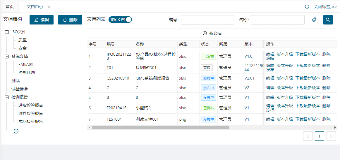 •提供体系文档管理,支持系统导出文档和外部上传文档,形成质量管理体系文档中心;