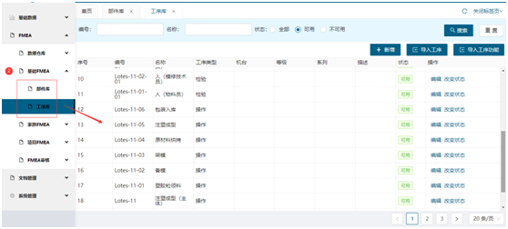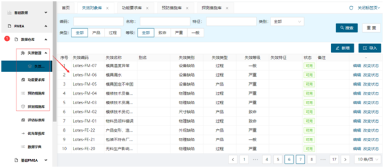 •系统系统零件和工序的基础FMEA新增、导入功能;