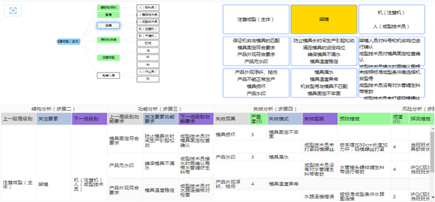 系统分析产品及过程的结构、功能、失效、现行控制及改善措施